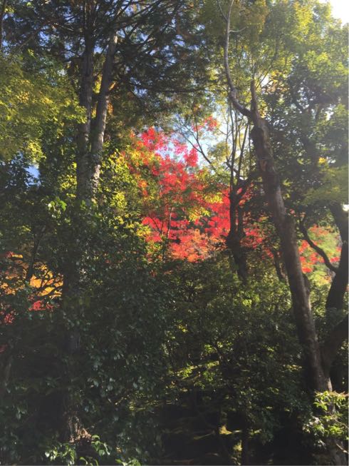 舞台の目の前には紅葉が…